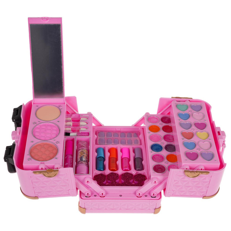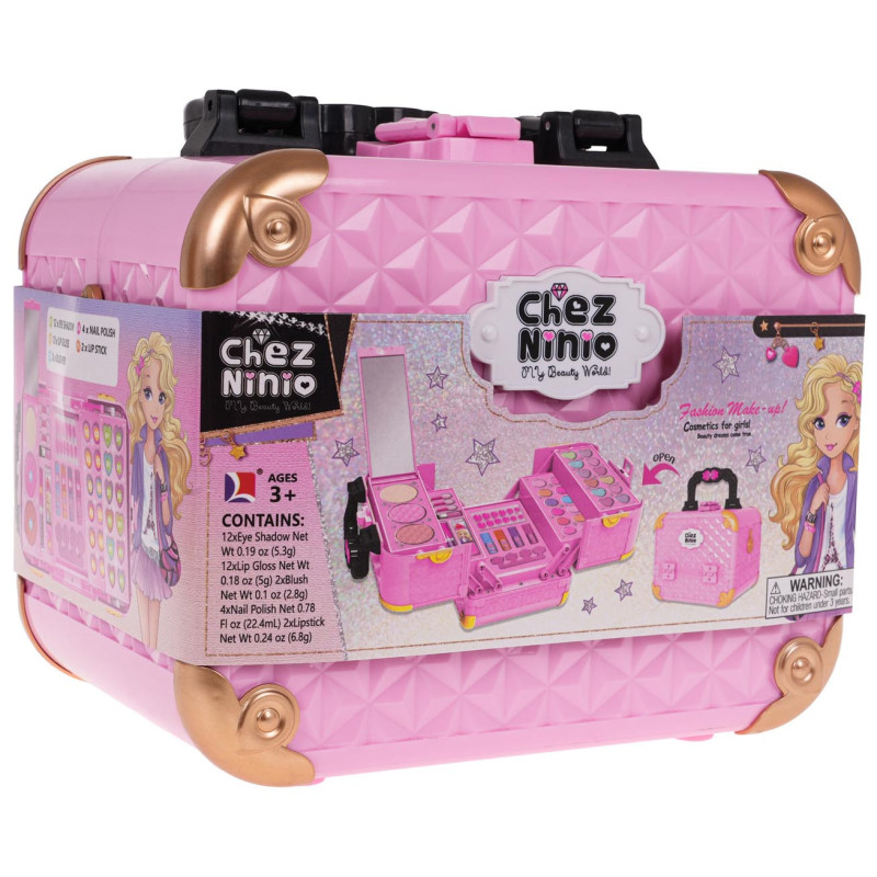 Nuostabus makiažo rinkinys su lagaminėliu, skirtas vaikams nuo 3 metų amžiaus. Lagaminėlis turi rankeną nešiojimui ir užsegamas sklende. Viduje slepiasi daug įvairių lūpų blizgesių, akių šešėlių, lūpdažių, dirbtinių nagų ir veidrodis. Visa kosmetika pagaminta iš vaikams saugių medžiagų ir yra lengvai nuplaunama.