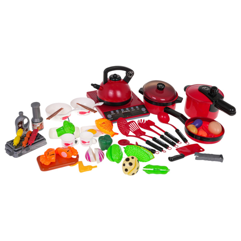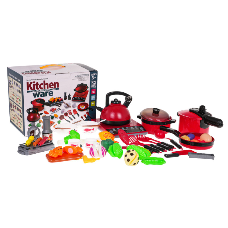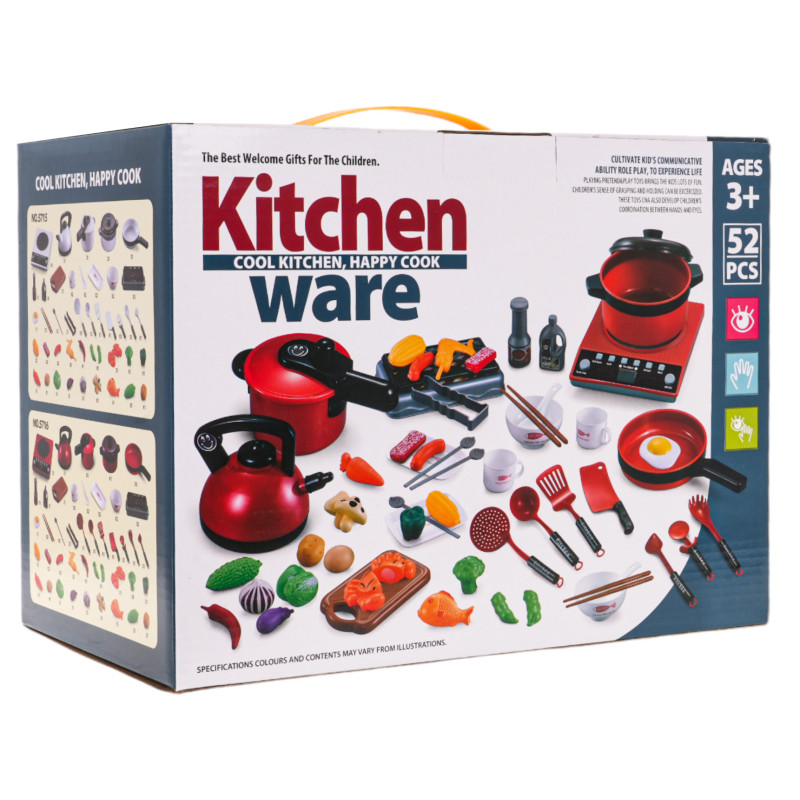 Gausiai aprūpintas virtuvės rinkinys, skirtas vaikams nuo 3 metų amžiaus. Rinkinį sudaro 52 elementai: interaktyvi viryklė, greitpuodis, virdulys, puodas su dangčiu, keptuvė ir daugybė virtuvės įrankių bei maisto produktų imitacijų. Viryklė maitinama 3 x AA 1,5 V baterijomis (nepridedamos), skleidžia kepimo ir virimo garsus, turi apšviestą degiklį. Ekrane taip pat rodoma kaitinimo galia, kurią galima reguliuoti. Rinkinys pagamintas skiriant dėmesį detalėms, ryškiomis spalvomis.