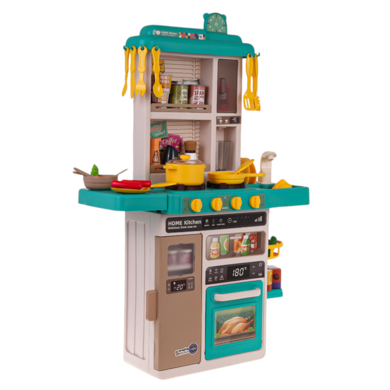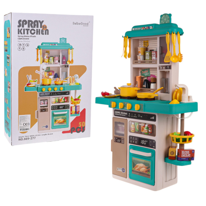 Interaktyvi virtuvėlė su šviesa, garsu, čiaupu, iš kurio bėga vanduo, ir daugybe priedų, skirta vaikams nuo 3 metų amžiaus. Virtuvėlė puikiai pagaminta iš geriausios kokybės plastiko ir yra ryškių spalvų, skatinančių vaiką žaisti. Virtuvės stalviršyje yra interaktyvi kaitlentė su degikliais. Pasukus vieną rankenėlę, girdisi virimo garsai, o pasukus kitą – kepimo garsai. Virimo ir kepimo garsus lydi degiklių apšvietimas. Iš vieno degiklio išeina saugūs garai. Iš čiaupo iš tikrųjų teka vanduo, kaip ir tikroje kriauklėje, todėl vaikas galės plauti žaislinius indus. Rinkinį taip pat sudaro šaldytuvo muliažas su atidaromomis durelėmis, orkaitė ir daugybė lentynėlių, kuriose galime dėti maisto produktų maketus. Visas rinkinys atrodo puikiai. Žaislas maitinamas 3 x 1,5 V baterijomis (nepridedamos).