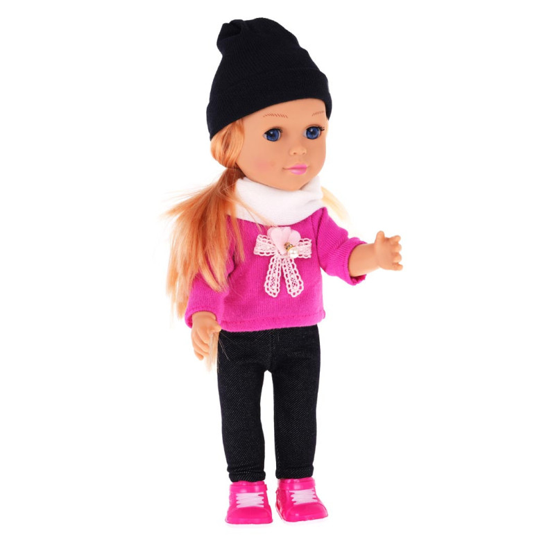 Graži lėlė, skirta vaikui nuo 3 metų. Lėlė puikiai išbaigta, dėmesys skiriamas kiekvienai detalei ir visiškai saugi vaikui. Ji aprengta megztiniu, kelnėmis, bateliais, kepure ir šaliku. Drabužėlius galime nusiimti ir lėlę perrengti kitais. Judančios kojos, rankos ir galva palengvina persirengimą. Lėlę maitina 3 AG13 baterijos (įeina į komplektą), paspaudus jos pilvuką galima išgirsti linksmą dainelę. Žaislas skatina vaiko motorikos vystymąsi. Žaislo funkcijos: - žaislas skirtas vaikams nuo 3 metų, - puikiai pagamintas, daug dėmesio skiriama detalėms, - graži jo išvaizda verčia vaiką nenorėti su juo atsisveikinti, - judančios rankos, kojos ir galva, - gražūs ilgi plaukai, puikiai tinkantys šukuoti, - nuimami drabužiai, - garso efektai: linksma dainelė, kai paspaudžiate lėlės pilvuką, - žaislas skatina vaiko motorinį vystymąsi. |