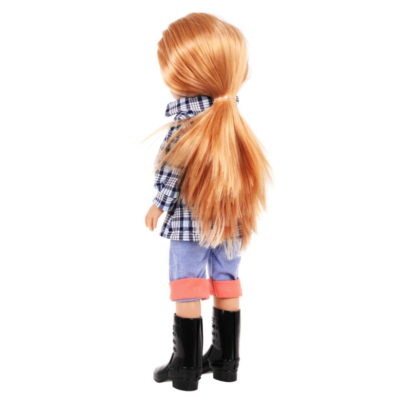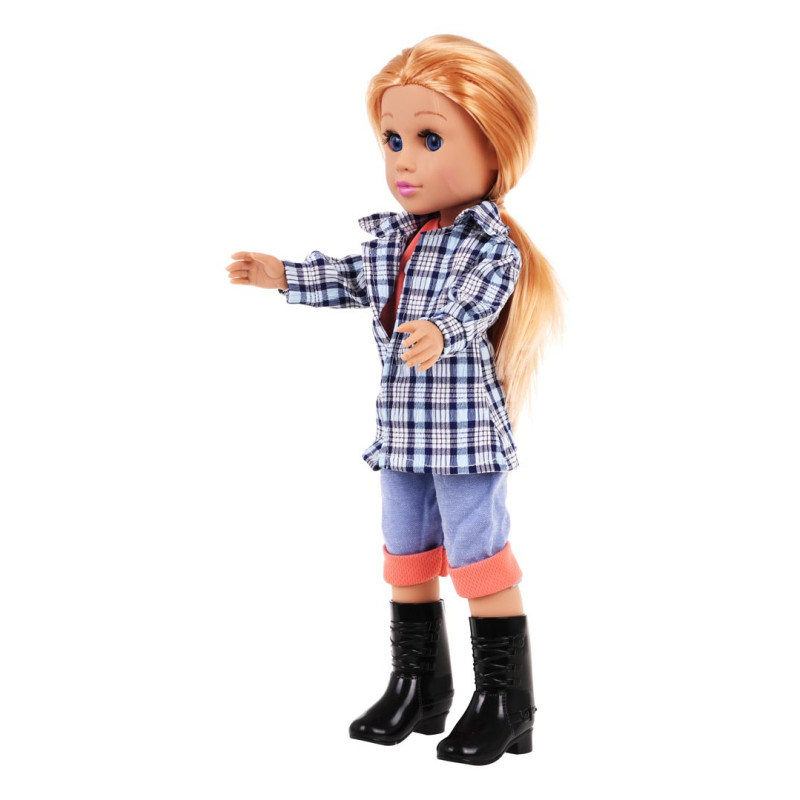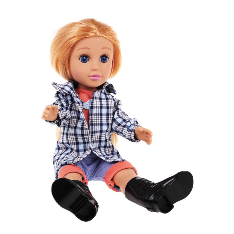 Graži lėlė, skirta vaikui nuo 3 metų amžiaus. Lėlė puikiai pagaminta, atkreipiant dėmesį į kiekvieną detalę ir yra visiškai saugi vaikui. Ji aprengta palaidine, marškinėliais, kelnėmis ir batukais. Drabužėlius galime nuimti ir perrengti lėlę kitais. Judančios kojos ir rankos palengvina perrengimą. Lėlės pilve yra mygtukas, kurį paspaudus, pasigirsta linksma daina. Žaislas maitinamas GR2032 baterijomis (pridedamos).