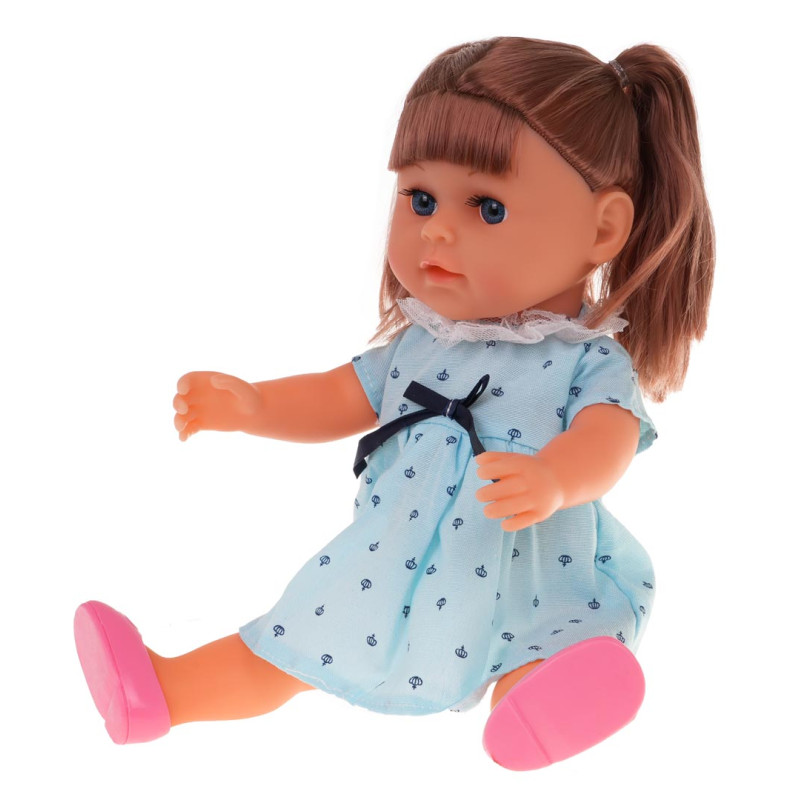 - tualetinis staliukas maždaug 38, 5 cm x 34, 5 cm x 14, 5 cm, - lėlė apie 35 cm x 16 cm x 10 cm, - indas lėlei maitinti, apie 10 cm x 5 cm x 4 cm, - muilinė, maždaug 7, 5 cm x 5 cm x 3 cm, - apie 4 cm x 4, 5 cm dydžio tepalo dėžutė, - dėžutė užpildams apie 7 cm x 4, 5 cm, - atsarginių batų dėžutė apie 5 cm x 2 cm x 3, 5 cm - plaukų džiovintuvas apie 9 cm x 7, 5 cm x 4, 5 cm, - apie 11 cm x 5, 5 cm x 2 cm veidrodis, - šukos, maždaug 11 cm x 4, 5 cm, - plaukų šepetys, maždaug 11 cm x 5, 5 cm x 2 cm, - apie 48, 5 cm x 39, 5 cm x 10 cm dydžio pakuotė. |