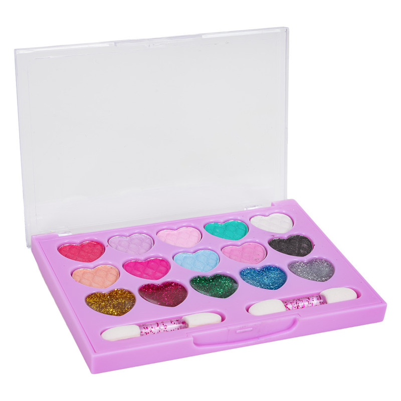 Akių šešėlių paletė su šepetėliais: apie 11 cm x 7,5 cm x 0,8 cm.