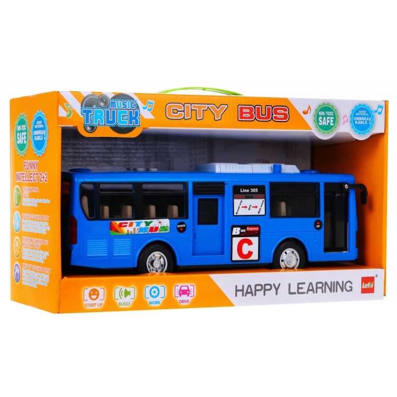 | Tikroviška išvaizda, solidus atlikimas. Jūsų vaikas žaidimo metu galės atlikti vairuotojo vaidmenį, nuspręsti, kada sustoti, atidaryti duris, skleisti garsą. Autobuso durys atidaromos ir uždaromos ant autobuso stogo esančiu strypu. Šviečiantys žibintai transporto priemonės priekyje ir viduje. Skydelis su mygtukais autobuso viršuje. Paspaudus numerį 1, įsijungia garsinis signalas. Paspaudus numerius 2, 3, 4, pasigirsta muzika, mirksi priekiniai žibintai. Žaislas turi galinių ratų pavarą. Žaislas lavina ir formuoja vaiko vaizduotę, padeda ugdyti rankų darbo įgūdžius. Skirtas vaikams nuo 3 metų, turi CE sertifikatą | |