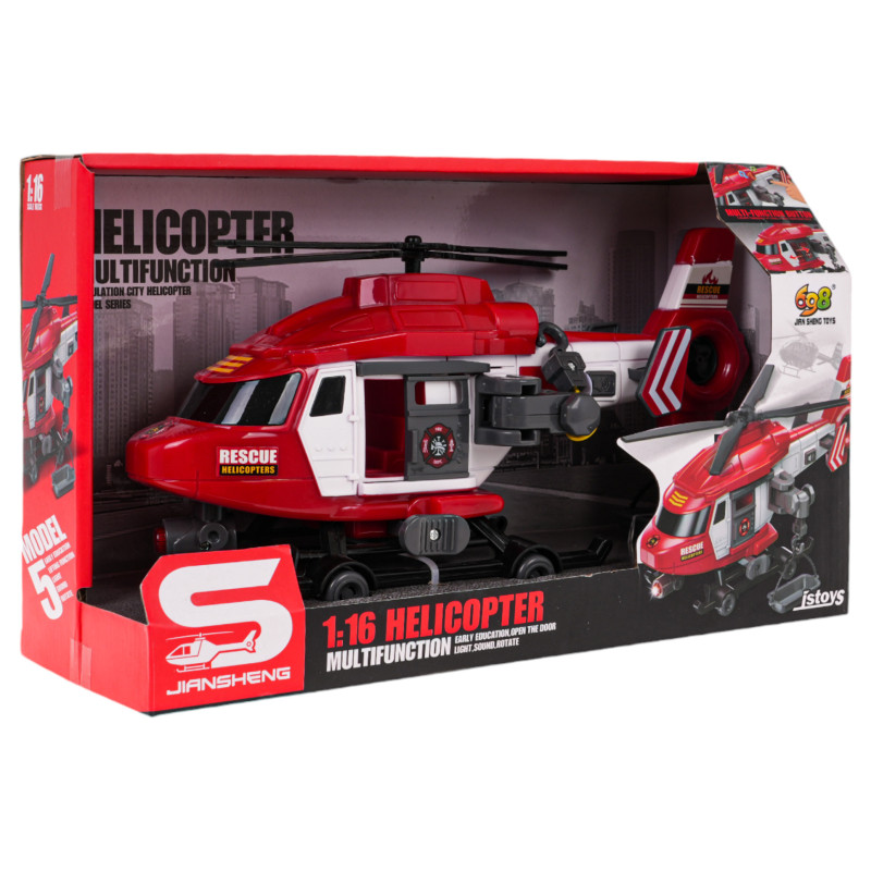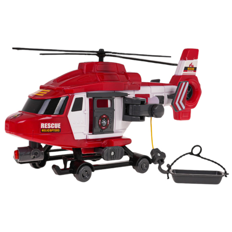 Interaktyvus gelbėjimo sraigtasparnis, pagamintas 1:16 masteliu, skirtas vaikams nuo 3 metų amžiaus. Jis pagamintas iš geriausios kokybės plastiko, ryškiomis spalvomis. Sraigtasparnis turi judančius elementus, tokius kaip atsidarančios durys, transportavimo kablys, judantys propeleriai ir krumpliaratis sraigtasparnio gale. Žaislas turi šviesos efektus – LED apšvietimą sraigtasparnio apačioje – ir garso efektus – autentiškus garsus, skleidžiamus tikro gelbėjimo sraigtasparnio. Žaislas maitinamas 3 x AG13 1,5 V baterijomis (pridedamos).