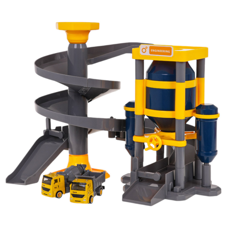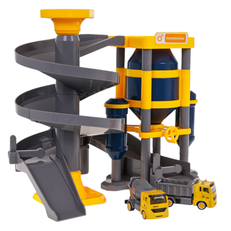 Statybvietė su silosu, nusileidimo rampomis ir automobiliais, skirta vaikams nuo 3 metų amžiaus. Rinkinys pagamintas iš geriausios kokybės plastiko, skiriant dėmesį detalėms. Statybvietė susideda iš dalies su silosu, į kurį galime supilti smėlį, o pasukę rankeną, išpilti reikiamą kiekį, ir dalies su rampomis, kuriomis gali judėti rinkinyje esančios statybinės transporto priemonės. Rinkinį sudaro savivartis ir betono maišyklė.