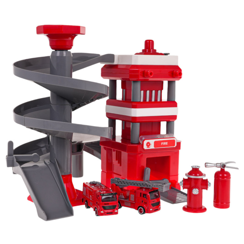 Gaisrinės stotis su vandens funkcija, nusileidimo trasa ir gaisriniais automobiliais, skirta vaikams nuo 3 metų amžiaus. Ant gaisrinės stoties stogo yra vandens talpa. Įpylus vandens į talpą ir paspaudus mygtuką šalia jos, vanduo ištekės iš priekinės stogo dalies. Apatinėje gaisrinės stoties dalyje yra garažas gaisrinėms mašinoms su judančiu užtvaru. Rinkinį sudaro du gaisriniai automobiliai su metaliniu korpusu, be to, vieno automobilio kopėčios pakyla, nusileidžia ir išsitiesia. Rinkinį taip pat sudaro hidrantas ir gesintuvas.