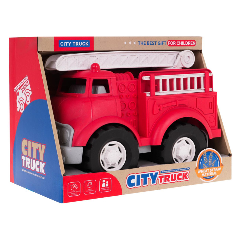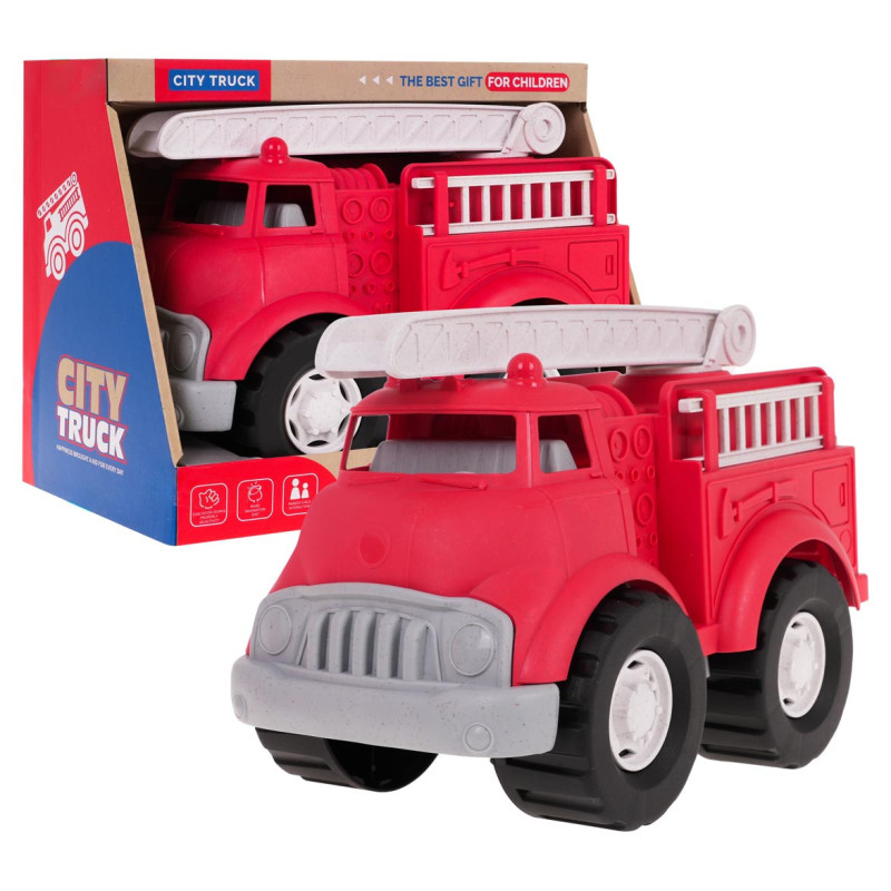 Gaisrinės mašina, pagaminta iš bioplastiko, skirta vaikams nuo 3 metų amžiaus. Ekologinė medžiaga yra saugi vaikams ir draugiška aplinkai. Gaisrinės mašina yra spalvinga, patvari ir atspari pažeidimams, turi judančias dalis. Gaisrinės kopėčios gali būti pakeliamos, nuleidžiamos ir pasukamos 360 laipsnių kampu. Dėka didelių judančių ratų, mažylis gali rankiniu būdu judinti transporto priemonę ant žemės.