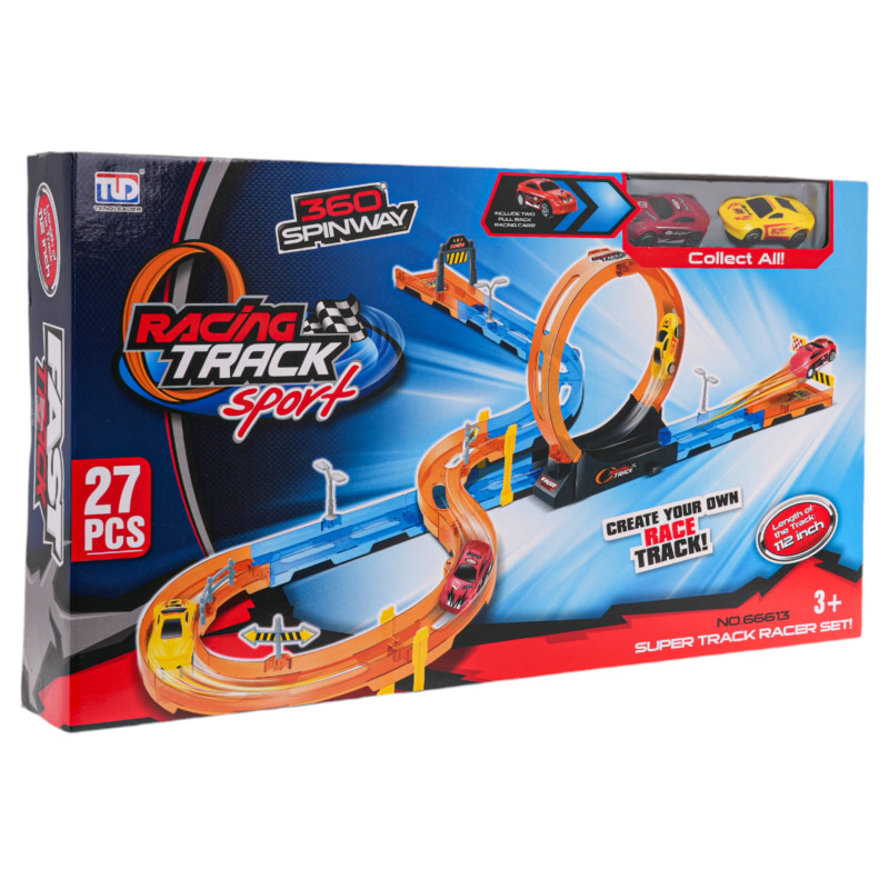 Didelė, ekstremali lenktynių trasa su staigiais posūkiais, kilpomis ir dviem automobiliais rinkinyje yra pasiūlymas vaikams nuo 3 metų. Rinkinį sudaro 27 elementai, kuriuos galima surinkti savarankiškai. Trasoje yra tiesių atkarpų, aštrių posūkių su užtvarais, apsaugančiais automobilį nuo iškritimo iš trasos, du lygiai ir 360 laipsnių kilpa. Rinkinyje esančios transporto priemonės turi traukos pavarą . | |