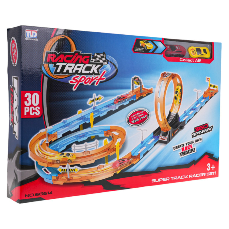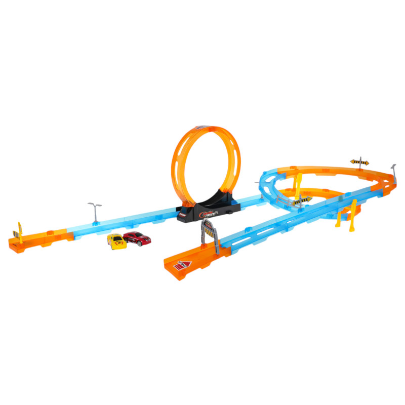 Didelė, ekstremali lenktynių trasa su staigiais posūkiais, kilpomis ir dviem automobiliais rinkinyje yra pasiūlymas vaikams nuo 3 metų. Rinkinį sudaro 30 savarankiškai surenkamų elementų. Trasoje yra tiesių atkarpų, aštrių posūkių su užtvarais, apsaugančiais automobilį nuo iškritimo iš trasos, du lygiai ir 360 laipsnių kilpa. Rinkinyje esančios transporto priemonės turi traukos pavarą atgal . | |