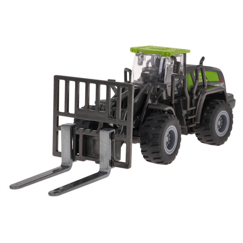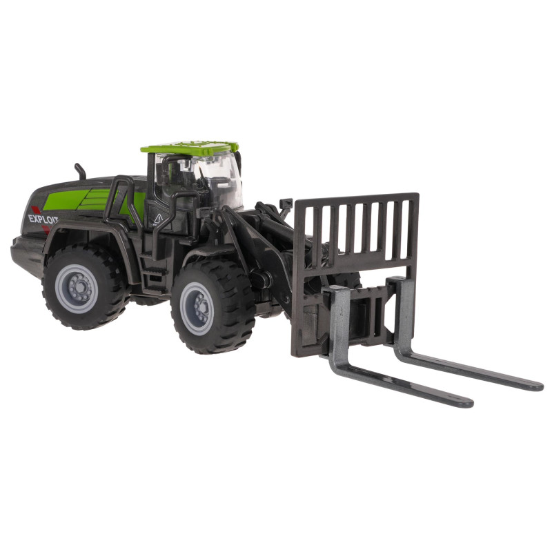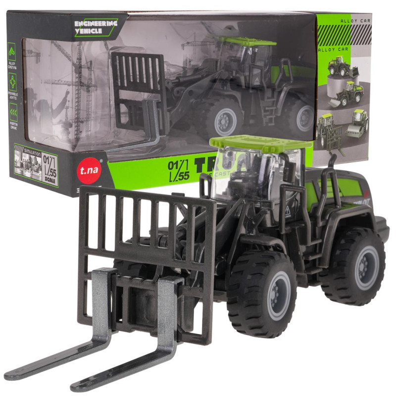Metalinis krautuvas su judančiomis dalimis, skirtas vaikams nuo 3 metų. Dėl metalinių elementų jis yra patvarus ir atsparus traumoms. Jis turi tikrovišką išvaizdą. Stiebą su šakėmis galima pakelti ir nuleisti rankiniu būdu, o šakės taip pat yra judinamos. Sunkvežimis turi gumines padangas ir galinių ratų pavarą. Šakinio krautuvo funkcijos: - tinka vyresniems nei 3 metų vaikams, - pagamintas iš metalinių elementų, - patvarūs ir atsparūs pažeidimams, - turi kilnojamąjį stiebą su šakėmis (aukštyn - žemyn), - ištraukiamos šakės, - guminės padangos, - galinių ratų pavara, - priekinę žaislo dalį galima nuimti. | |