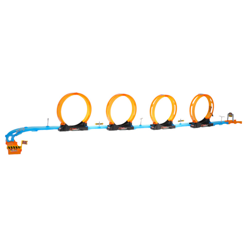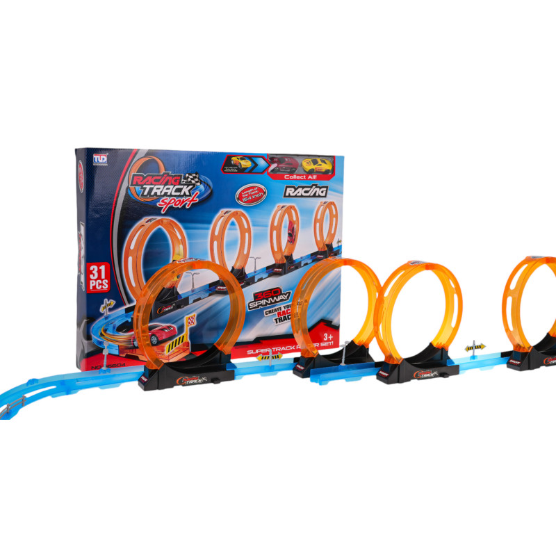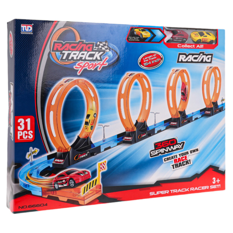 Lenktynių trasa su keturiomis 360 laipsnių kilpomis, skirta vaikams nuo 3 metų. Trasa pagaminta iš geriausios kokybės ryškiaspalvio plastiko. Rinkinį sudaro 31 elementas, kurį galima surinkti savarankiškai. Trasoje yra tiesios atkarpos, skirtos transporto priemonei pagreitinti, ketvirtoji 360 laipsnių kilpa ir dvi transporto priemonės. Transporto priemonės varomos traukos pavara atgal. Tiesiog švelniai pastumkite transporto priemonę atgal, kad galėtumėte važiuoti trasa visu pajėgumu. Trasos ypatybės: - tinka vaikams nuo 3 metų, - pagamintas iš geriausios kokybės ryškiaspalvio plastiko, - 4 360 laipsnių kilpos, traukite vairuojamąsias transporto priemones atgal, | |