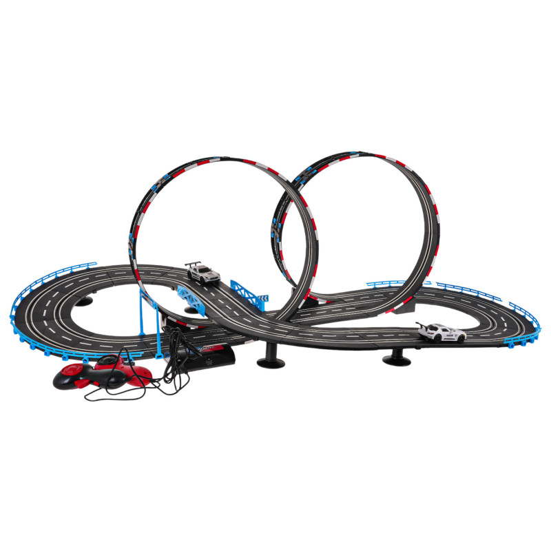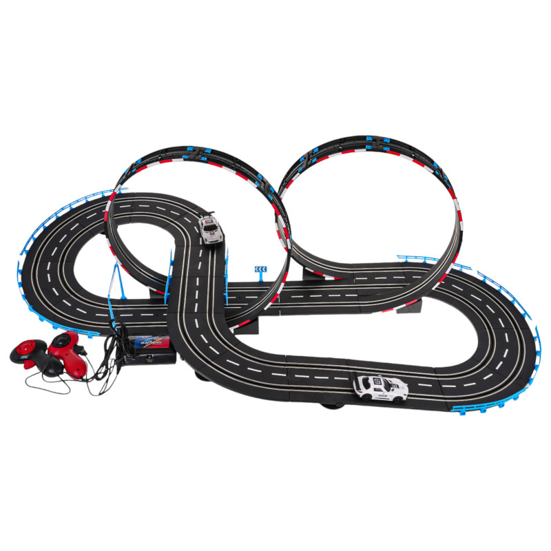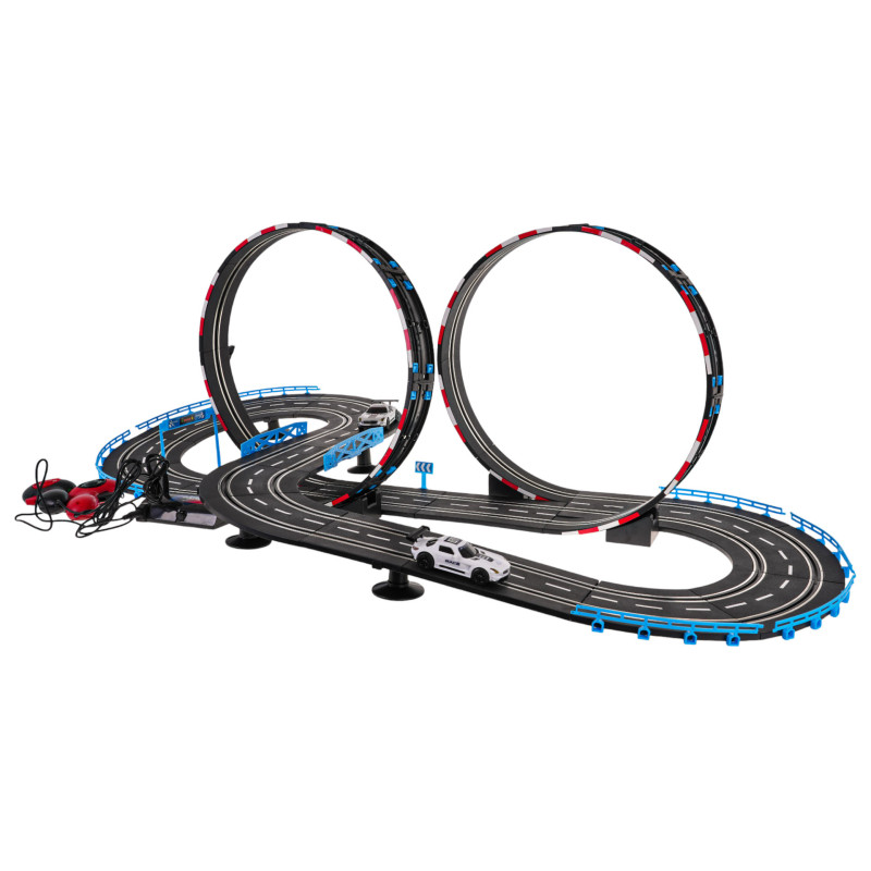 Individualūs konstrukcijos elementai leis sukurti trasą su staigiais posūkiais, spiralėmis ir tiesiomis atkarpomis – viskas tam, kad žaidimas būtų kuo patrauklesnis ir įspūdingesnis. Rinkinį sudaro dvi transporto priemonės. Rinkinys idealiai tinka vaikams nuo 6 metų amžiaus. Žaislas maitinamas 6 x AA 1,5 V baterijomis (baterijos nepridedamos).