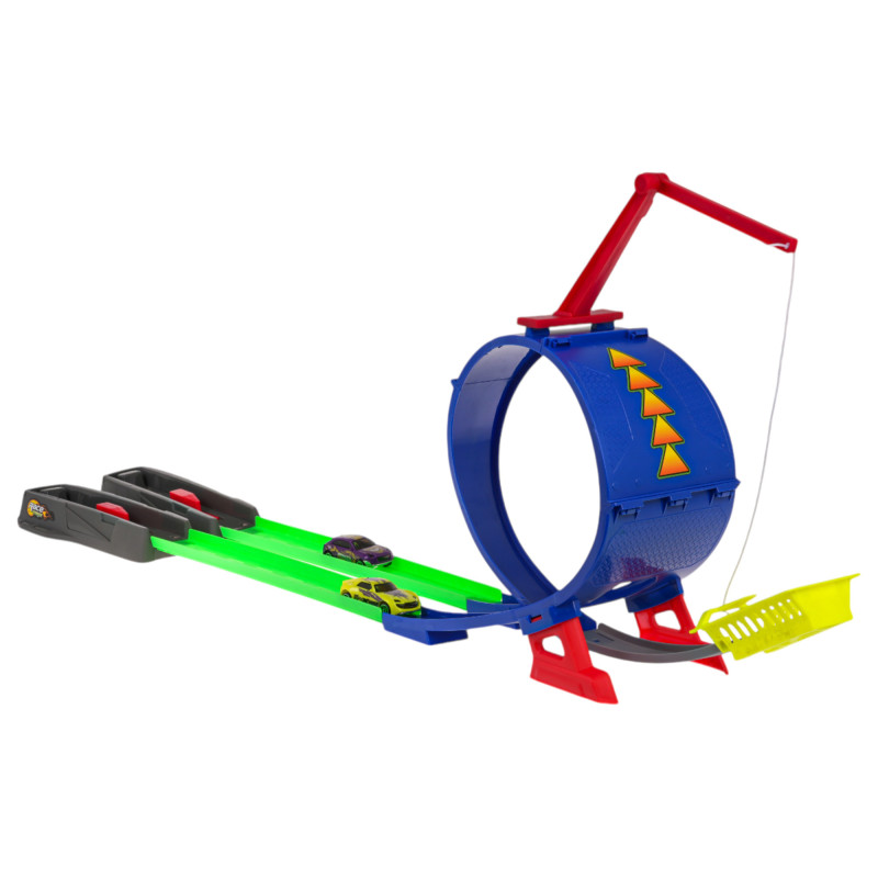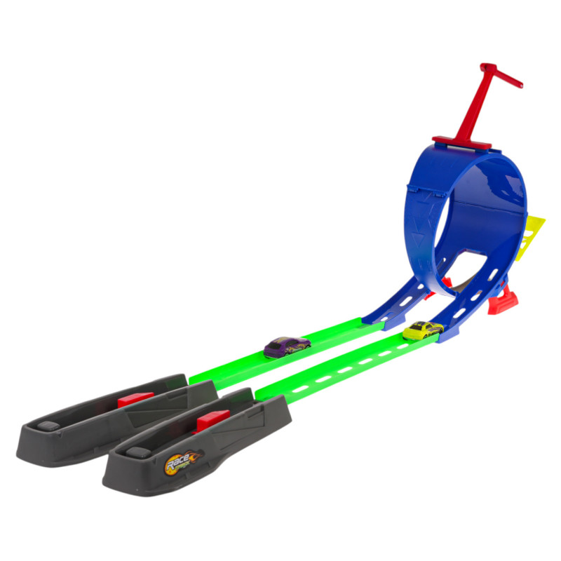 Lenktynių trasa su paleidimo įrenginiu, skirta vaikams nuo 3 metų amžiaus. Trasa pagaminta iš geriausios kokybės plastiko, ryškiomis spalvomis. Trasa turi paleidimo įrenginį, tiesias atkarpas transporto priemonės įsibėgėjimui, 360 laipsnių kilpą ir dvi transporto priemones.