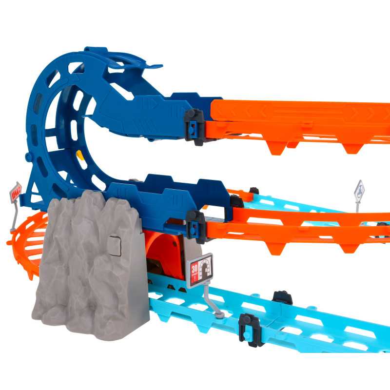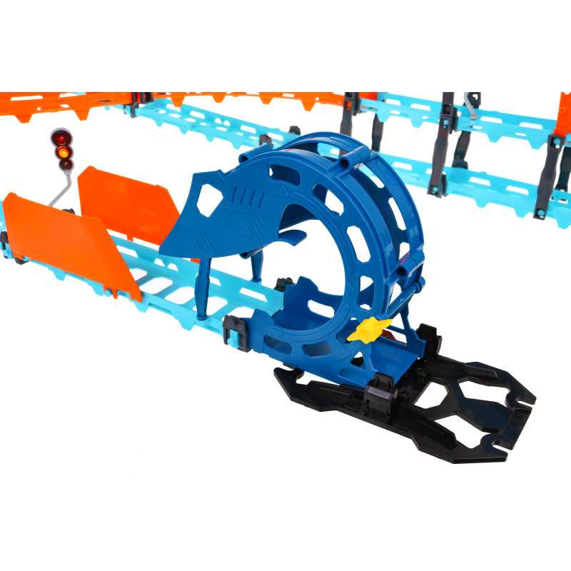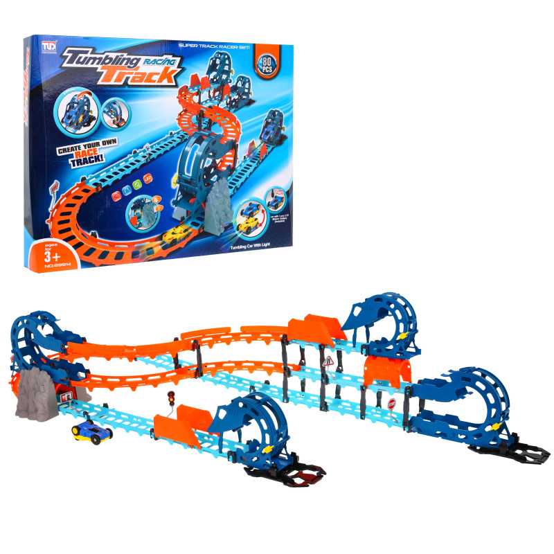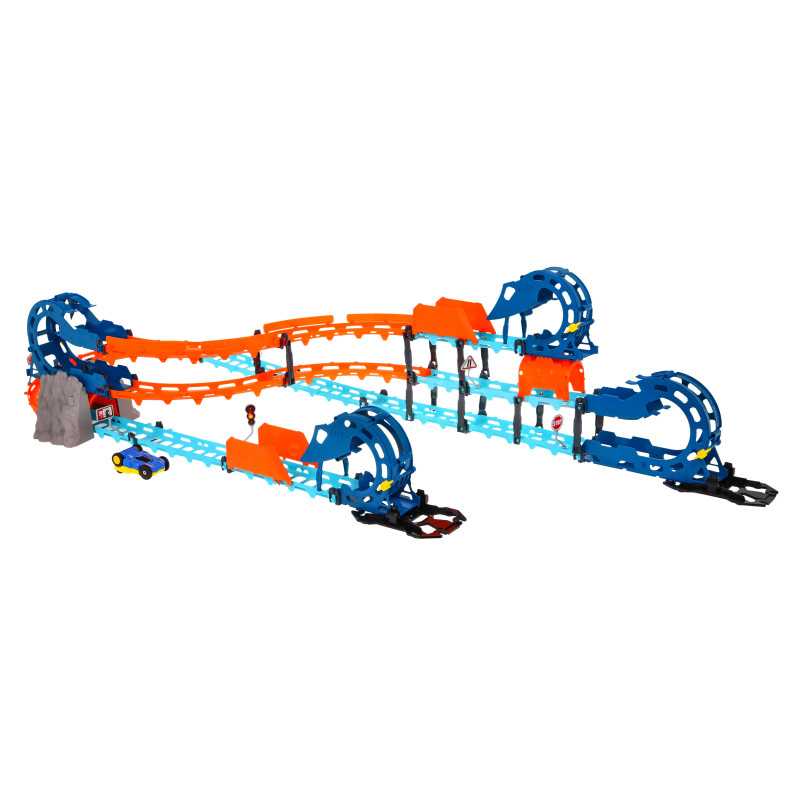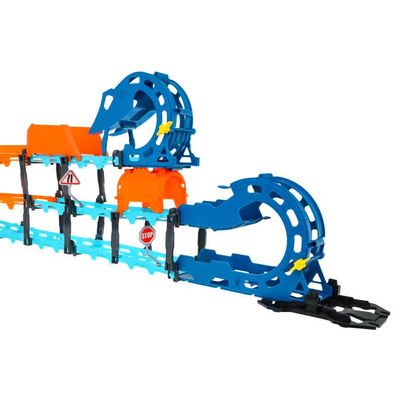 | Ekstremali kelių lygių lenktynių trasa su garso ir šviesos funkcija - tinkama vyresniems nei trejų metų vaikams. Rinkinį sudaro viena dvipusė transporto priemonė, maitinama 3, 7 V akumuliatoriumi (rinkinį sudaro). Trasoje lenktyniaujantis automobilis apsisuka 360 laipsnių kampu, turi žibintus priekyje ir gumines galines padangas. Jis įkraunamas per USB jungtį. Trasoje yra apšviestas tunelis, kuriame skamba ralio automobilio garsai - jį maitina 3 x AA 1, 5 V baterijos (į komplektą neįeina). | |