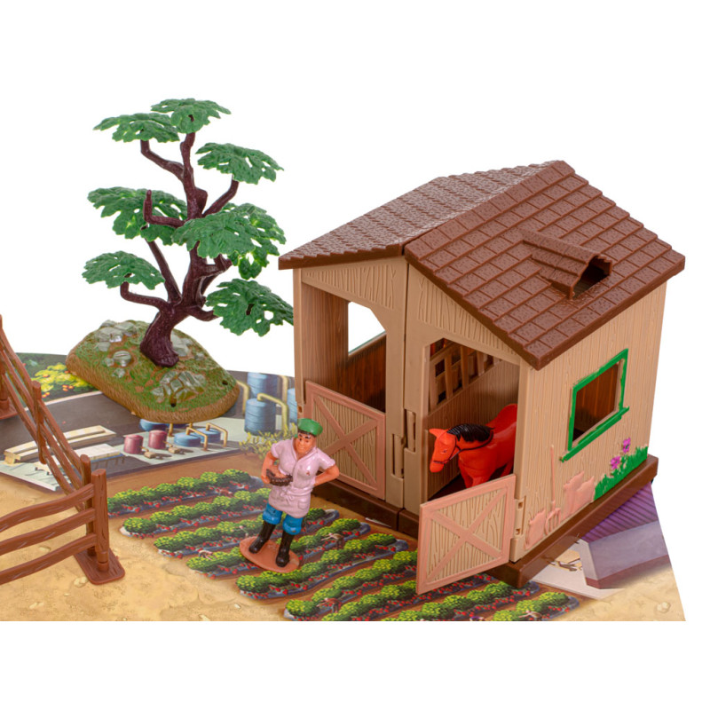 Šis žaislas padės jūsų vaikui geriau suprasti gyvenimo kaime realijas. Rinkinys lavina vaizduotę ir kūrybinį mąstymą. Lentos konstrukcija leidžia įrengti ūkinius pastatus pagal mažo statytojo viziją. Visi elementai pritaikyti mažoms rankoms, todėl vaikas lengvai "atstatys" savo kiemą.