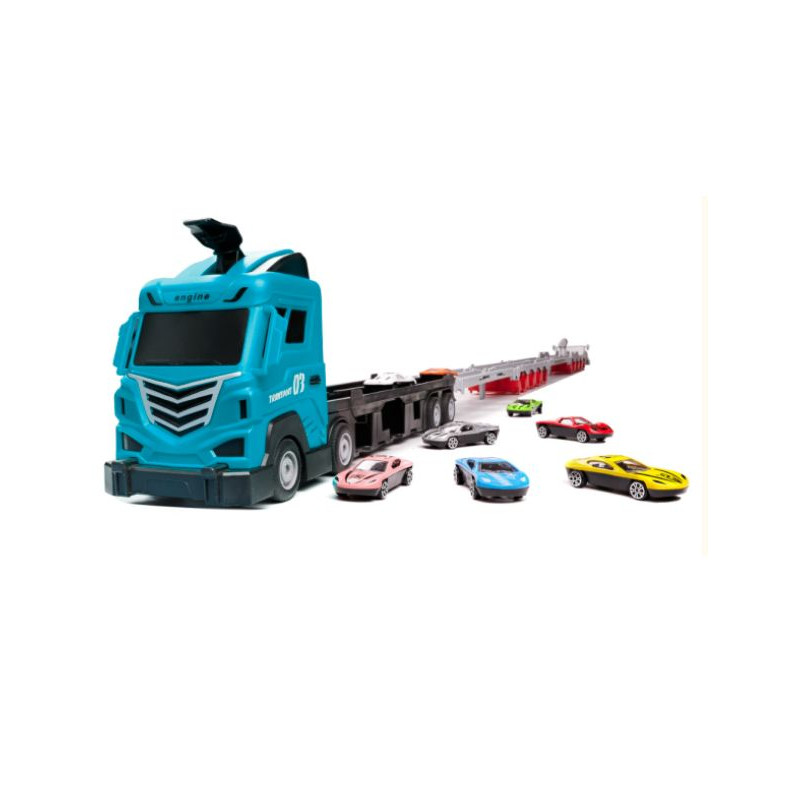 Mėlynas sunkvežimis yra žaislas, kuris padeda lavinti vaikų smulkiąją motoriką. Išskleistas, jis virsta 210 centimetrų ilgio trasa, kurioje gali lenktyniauti 8 pridedami automobiliai. Integruotas paleidimo įrenginys leidžia dinamiškai paleisti automobilius. Po žaidimo visas transporto priemones galima lengvai pakrauti atgal į sunkvežimį, todėl žaislas užima nedaug vietos.