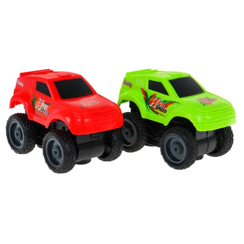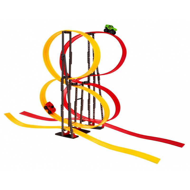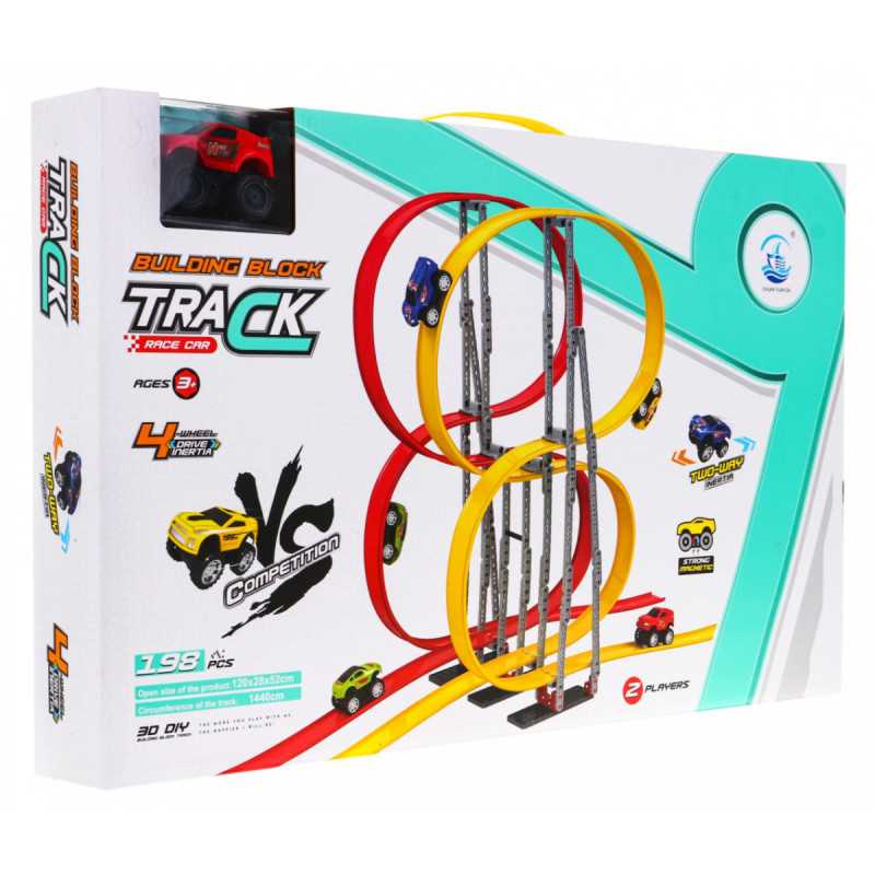 | Lenktynių trasa su dviem automobiliais ir kilpomis yra tinkamas vaikams nuo 3 metų. Trasą lengva nutiesti, ji neužima daug vietos, lengvai valdoma. Tereikia patraukti automobilį atgal trasoje, kuris vėliau turi įveikti dvigubą kilpą, važiuodamas į kalną, o paskui leisdamasis žemyn. Vienu metu trasa gali žaisti du žmonės. Automobiliai varomi priekiniais ir galiniais ratais, o jų konstrukcijoje yra stiprūs magnetai, dėl kurių jie tvirtai prilimpa prie žemės. Visą rinkinį sudaro 198 elementai. | |