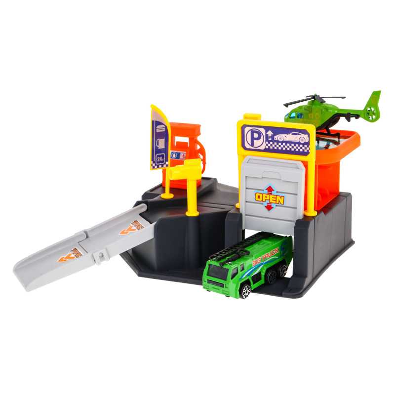 | Rinkinį sudaro 22 elementai. Prie automobilių stovėjimo aikštelės yra pritvirtintas kilimėlis su keliais, kuriais vaikas galės važinėti automobiliais. Neabejotinas šios automobilių stovėjimo aikštelės privalumas yra jos dydis, ji neužima daug vietos kambaryje. Žaislas skirtas vaikams nuo 3 metų. | |